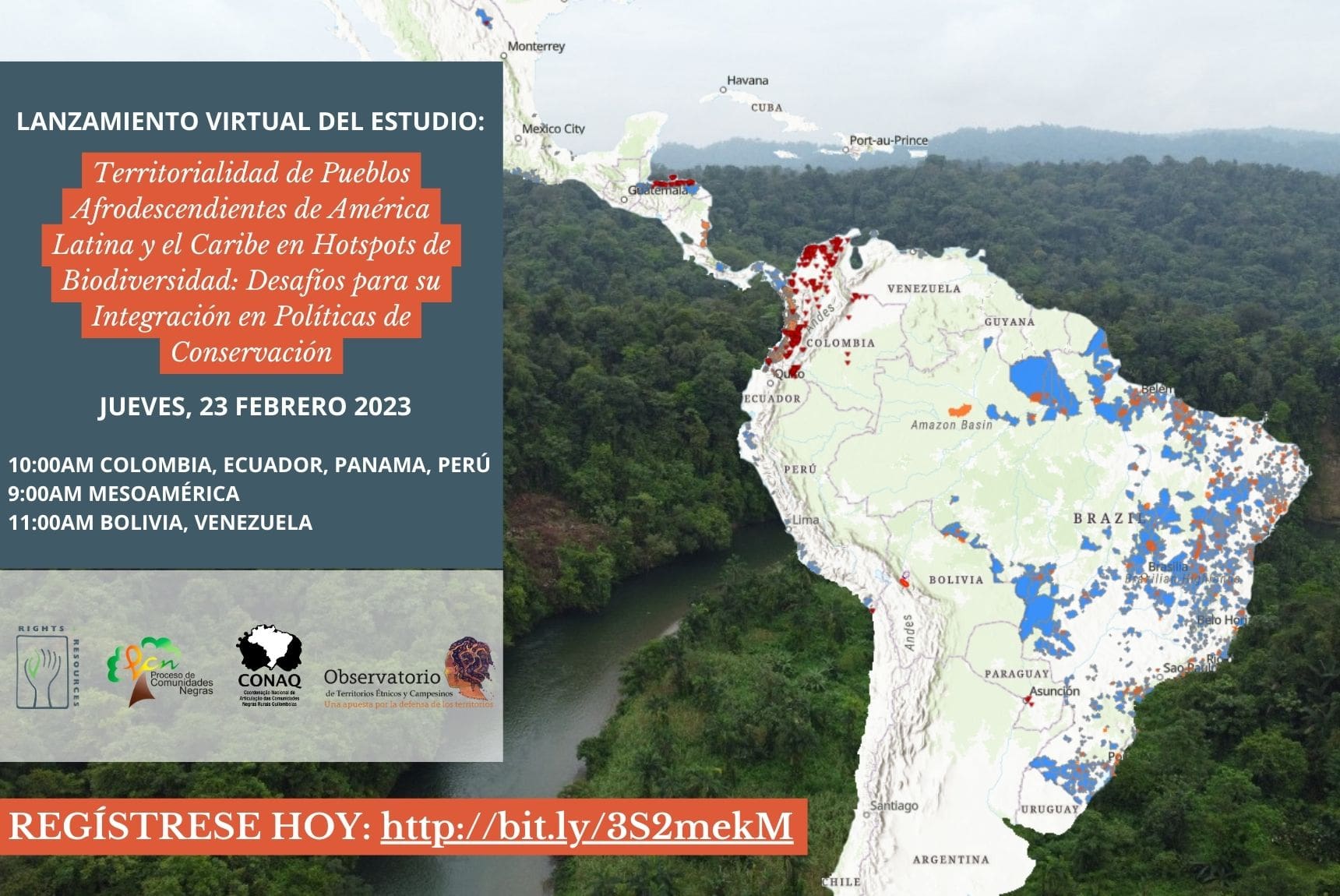 El 23 de febrero, la Iniciativa para los Derechos y Recursos (RRI por sus siglas en inglés), el Proceso de Comunidades Negras (PCN) de Colombia, la Coordenação Nacional de Articulação das Comunidades Negras Rurais Quilombolas (CONAQ) de Brasil, y el Observatorio de Territorios Étnicos y Campesinos (OTEC) de la Universidad Javeriana de Colombia ha lanzado un nuevo estudio titulado, Territorialidad de Pueblos Afrodescendientes de América Latina y el Caribe en hotspots de biodiversidad: desafíos para su integración en políticas de conservación.