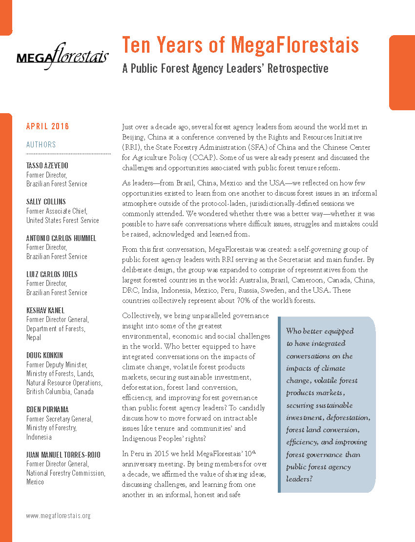 From this first conversation, MegaFlorestais was created: a self-governing group of public forest agency leaders with RRI serving as the Secretariat and main funder.