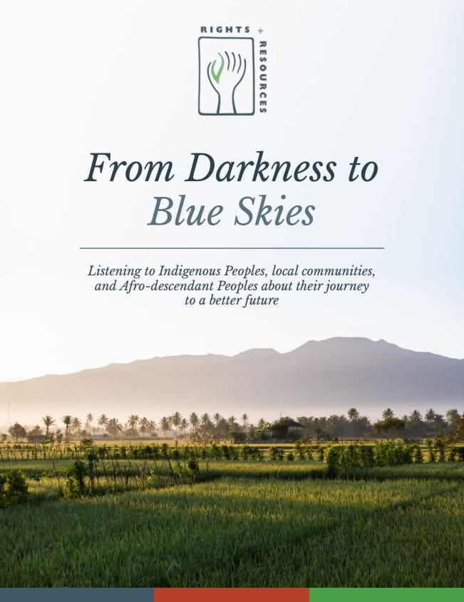 The interviews, commissioned by the Rights and Resources Initiative and conducted anonymously, used a “blue-skies thinking” approach, in which we created a freeform space for brainstorming and new ideas. We encouraged participants to be open-minded and to think beyond day-to-day concerns. As appropriate, we spoke in Bahasa, English, French, Nepali, Portuguese, and Spanish, sometimes with interpretation in Indigenous languages. We sought clarity on what these leaders want the world to be like in 2030 and beyond, how such a world could be brought into being, and their worries about the journey to get there.