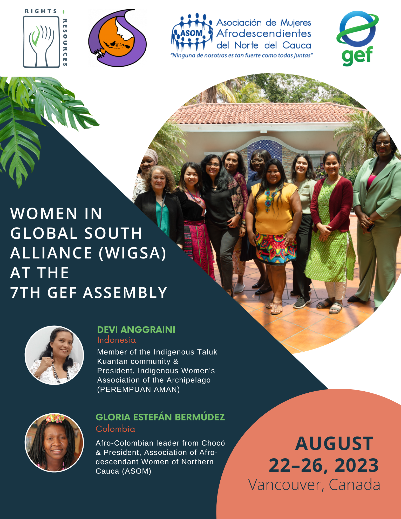 Two members of the Women in Global South Alliance for tenure and climate (WiGSA) will attend the 7th GEF Assembly in Vancouver, Canada to advocate for a gender-inclusive and equitable Global Biodiversity Framework Fund that takes into consideration the needs of Indigenous, Afro-descendant, and local community women and girls on the frontline of the climate crisis.